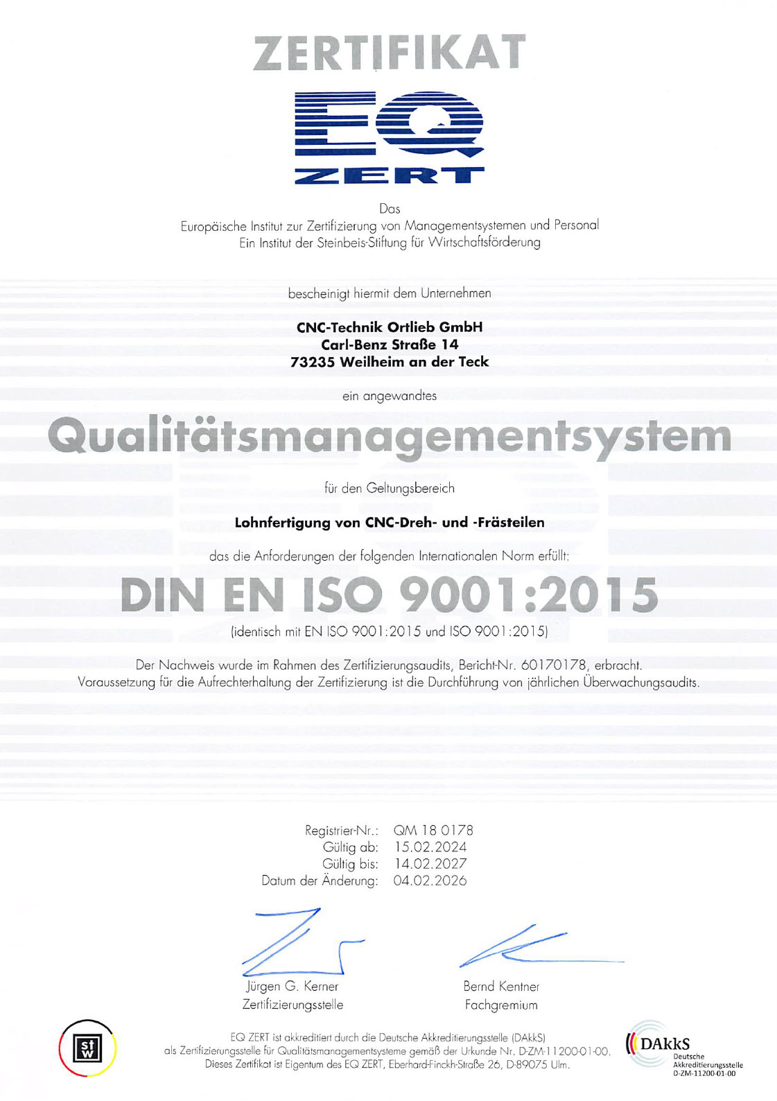 Alle unsere Prozesse und Abläufe sind nach DIN EN ISO 9001:2015 zertifiziert.
